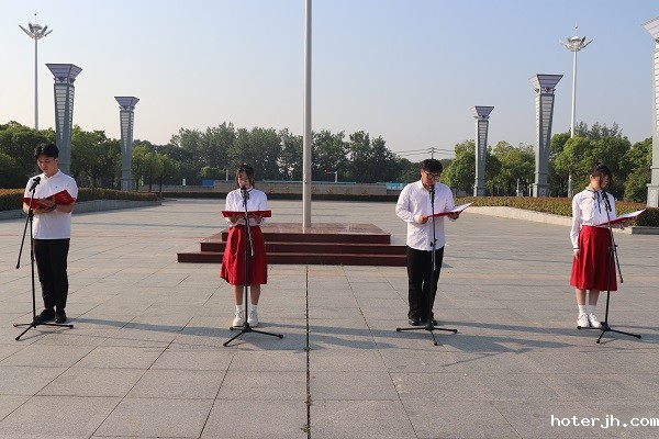 7时10分,升旗仪式正式开始,国旗护卫队以整齐划一的步伐、挺拔的身姿护送国旗入场。伴随着雄壮的国歌,鲜艳的五星红旗冉冉升起、迎风飘扬,全体师生肃立注目,以饱满的精神状态向国旗致以崇高敬意。