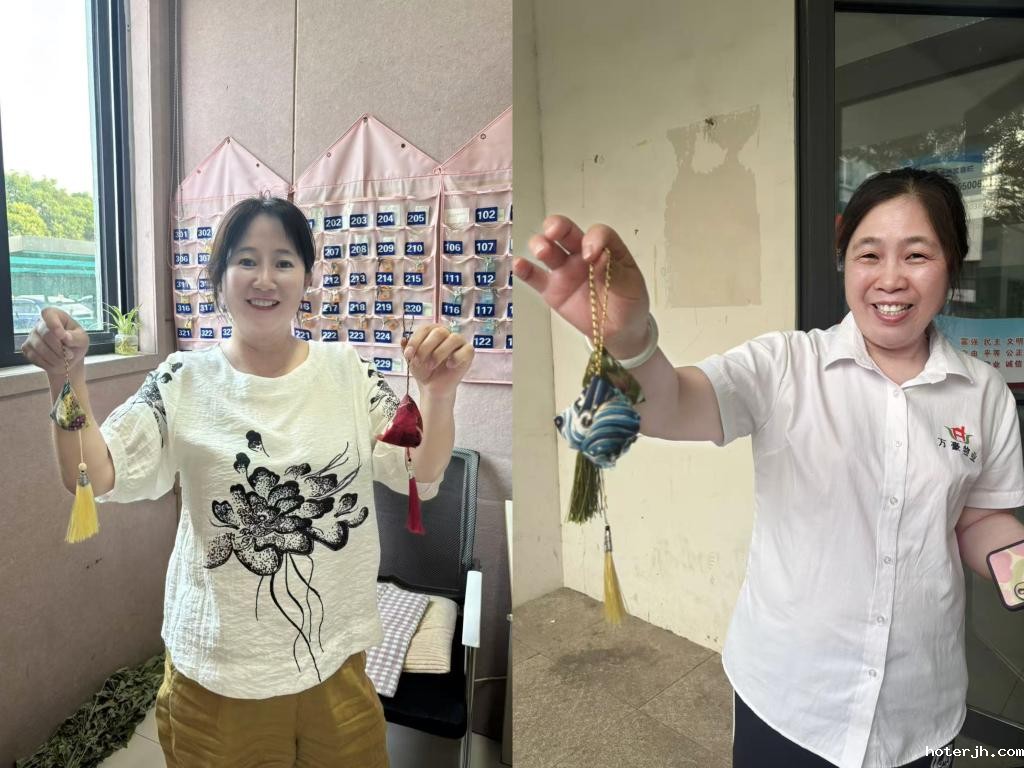 制作完成后,同学们带着这些承载着心意的艾草包,怀着敬意将它们送到学生公寓宿管阿姨们手中,宿管阿姨们脸上洋溢着幸福的笑容。她们表示,这些艾草包不仅带来了节日氛围,更让她们感受到了同学们爱心。