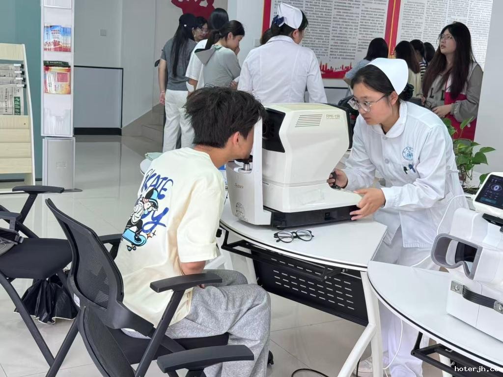 活动期间,护理学院志愿者和苏滁眼科中心医护人员相互配合,有序开展各项服务。干眼检查借助专业仪器,为受检者排查眼干、眼涩诱因;雾化熏蒸环节,轻柔雾气让眼部得到放松,缓解用眼疲劳;验光检查配镜服务,精准检测视力,为有需求的师生适配清晰“视”界;裂隙灯检查则细致筛查基础眼病,助力早发现、早干预;针对师生日常佩戴的眼镜,还提供镜架调整清洗、配件更换服务,让眼镜 “焕然一新”。