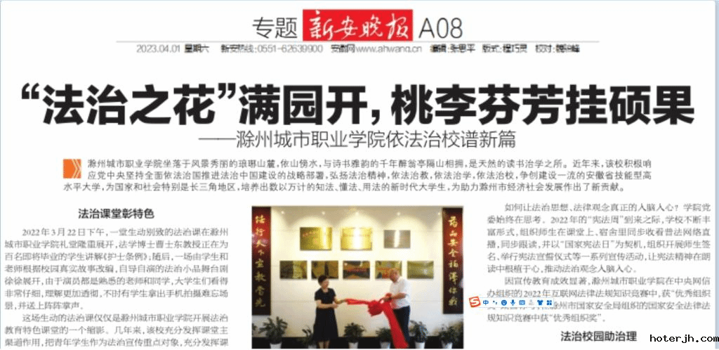 《新安晚报》整版报道我校依法治校新成就